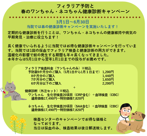 フィラリア予防と春のワンちゃん・ネコちゃん健康診断キャンペーン